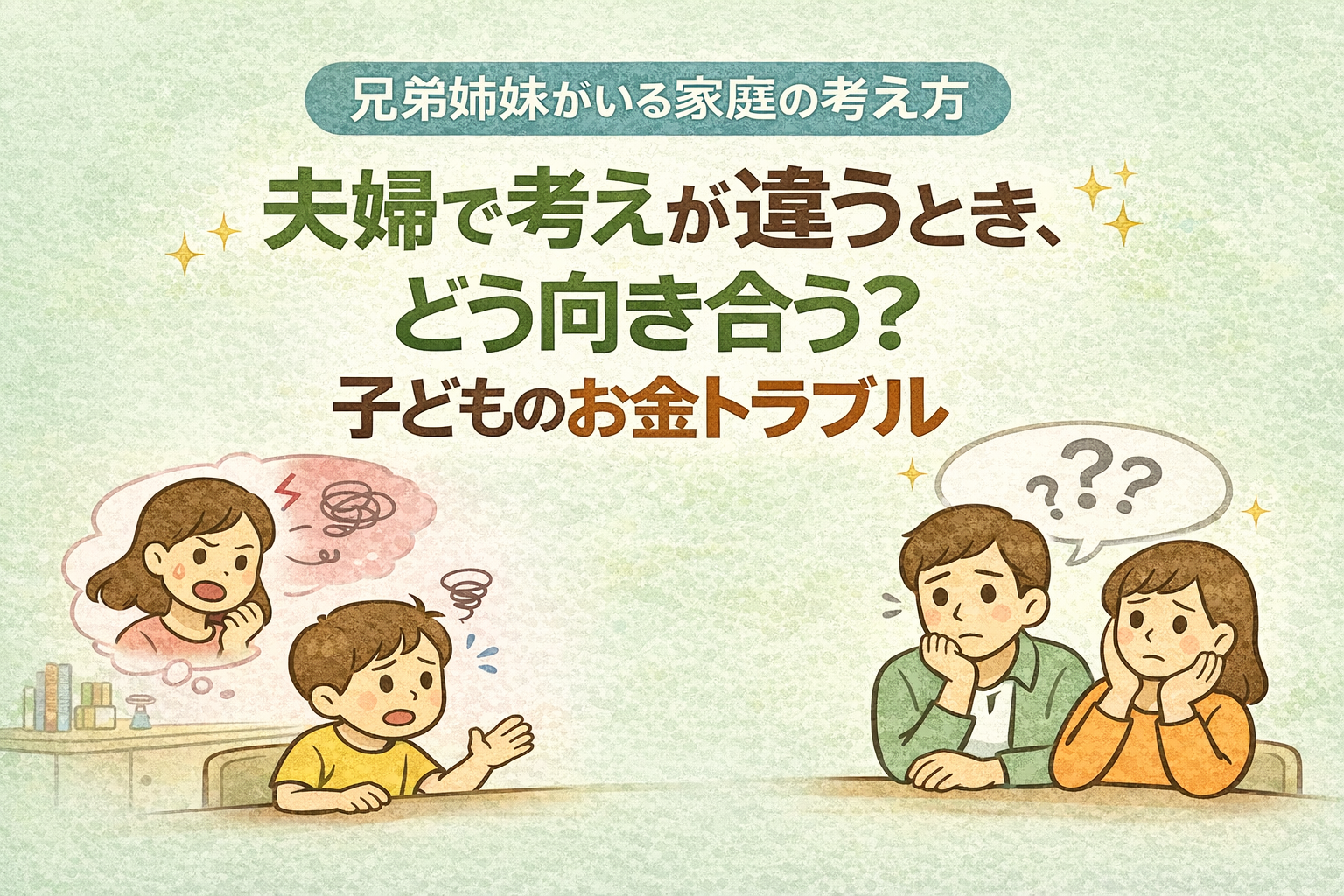 夫婦で考えが違うとき、どう向き合う?子どものお金トラブル|兄弟姉妹がいる家庭の考え方」