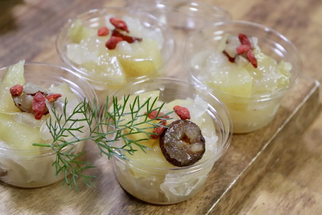 食材は肺を潤す白キクラゲと梨、咳を止める効能のあるはちみつ